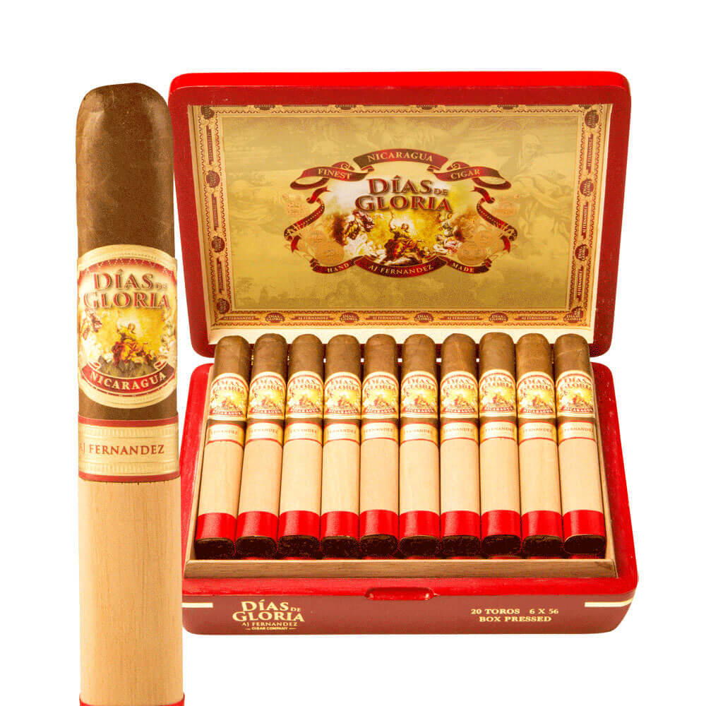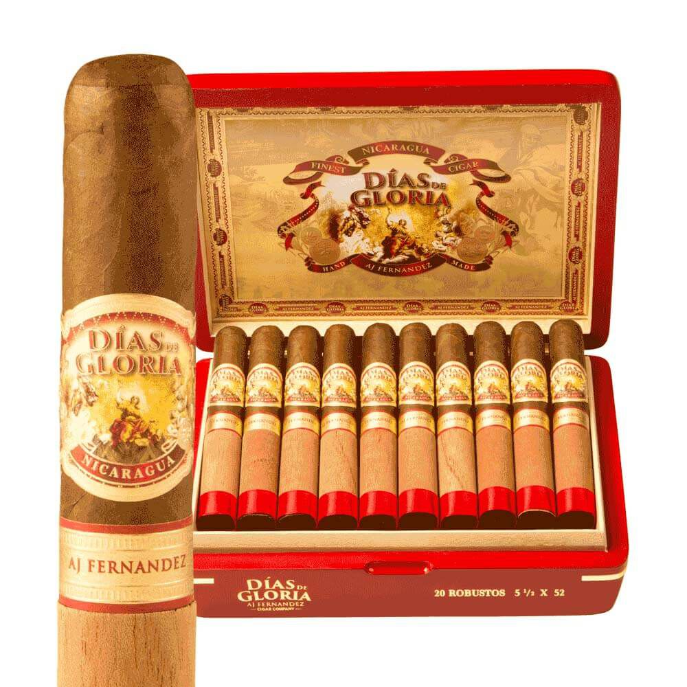 AJ Fernandez Dias de Gloria cigars are a four-size line that was made to capture the essence of those great old Cuban cigars that were prevalent prior to the 1959 Cuban revolution. This Nicaraguan puro blend consists of top-quality tobaccos from four of AJ’s farms in Nicaragua, with some of these proprietary leaves aged for up to seven years. Medium to full bodied in strength, this complex, well balanced, smoke displays rich notes of wood, cedar, earth, leather, cocoa, and spices. The Dias de Gloria brand has become a staple in my humidor, and I think that it’s a must-try cigar for anyone looking to experience a smoke that tastes just like a genuine pre-embargo Cubano!