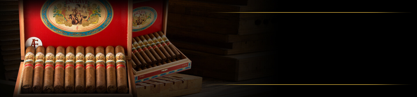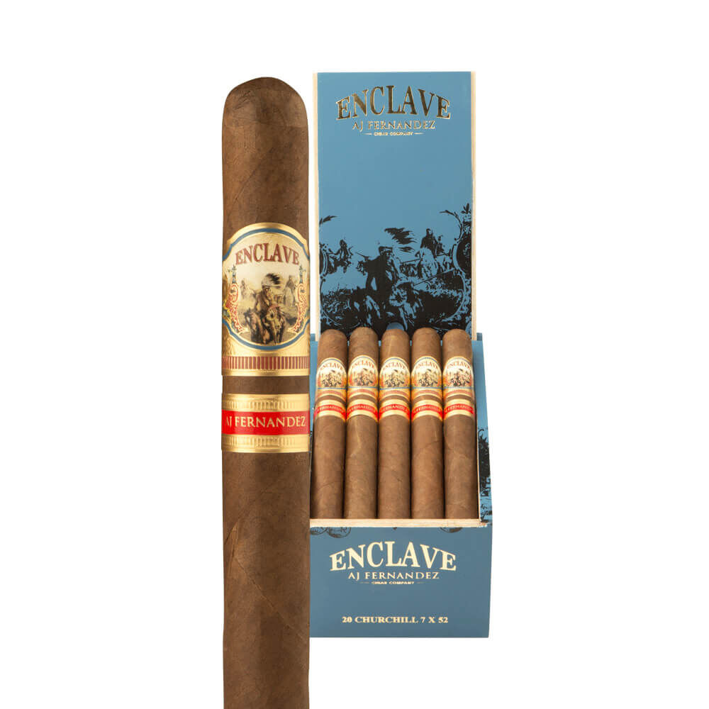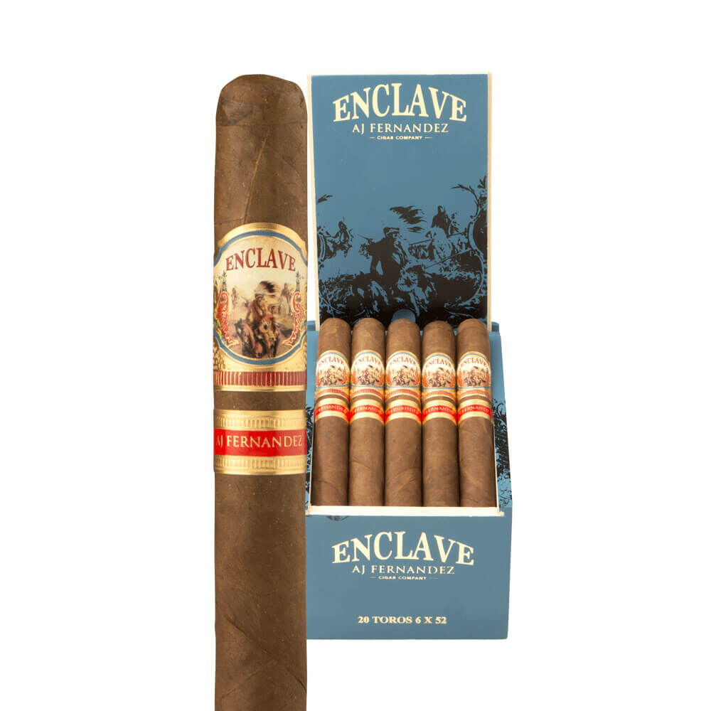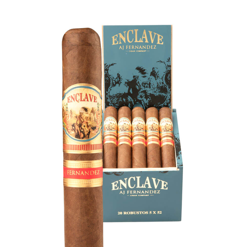 A.J. Fernandez Cigars created another perfect, full-bodied smoking experience with Enclave. The eye-catching Ecuadorian Habano Rosado wrapper encompasses a Cameroon binder. AJF Piloto Cubano and AJF Select Nicaraguan aged fillers add an extra bit of toasty deliciousness. A.J. Fernandez and his father, Ismael, combined their mutual love of cigars and expertise for the first time ever resulting in a hand-crafted, ultra-premium cigar with superb quality. In every puff, expect cinnamon, pepper, spice and undertones of cedar. Cigar connoisseurs can purchase this reddish-brown stogie in four sizes.