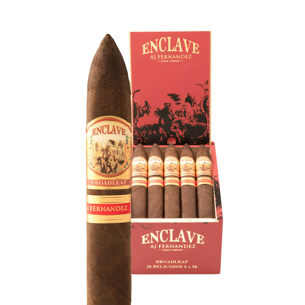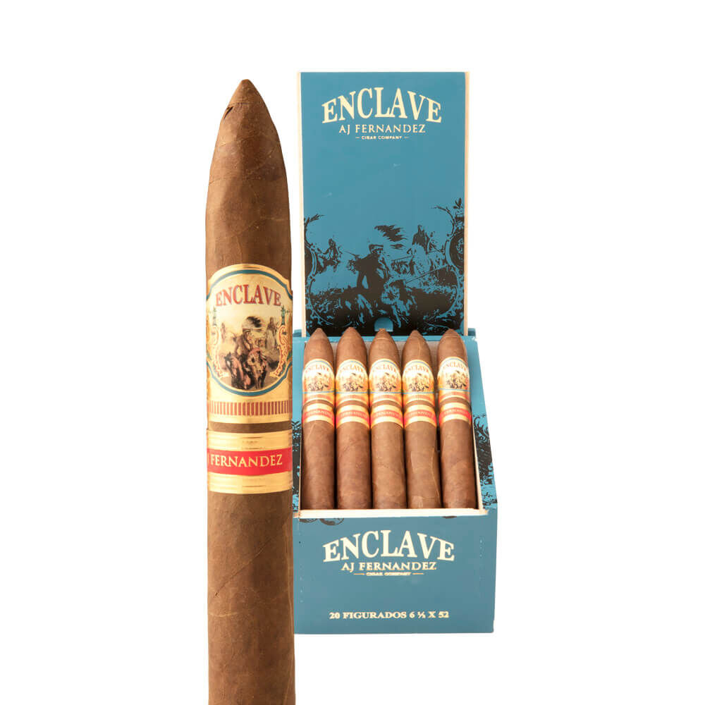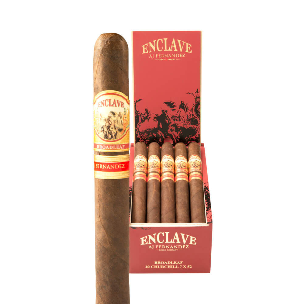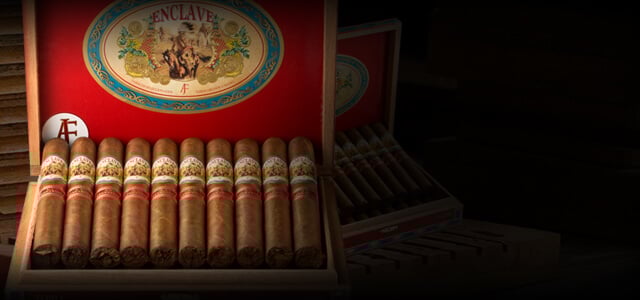A.J. Fernandez Cigars created another perfect, full-bodied smoking experience with Enclave. The eye-catching Ecuadorian Habano Rosado wrapper encompasses a Cameroon binder. AJF Piloto Cubano and AJF Select Nicaraguan aged fillers add an extra bit of toasty deliciousness. A.J. Fernandez and his father, Ismael, combined their mutual love of cigars and expertise for the first time ever resulting in a hand-crafted, ultra-premium cigar with superb quality. In every puff, expect cinnamon, pepper, spice and undertones of cedar. Cigar connoisseurs can purchase this reddish-brown stogie in four sizes.