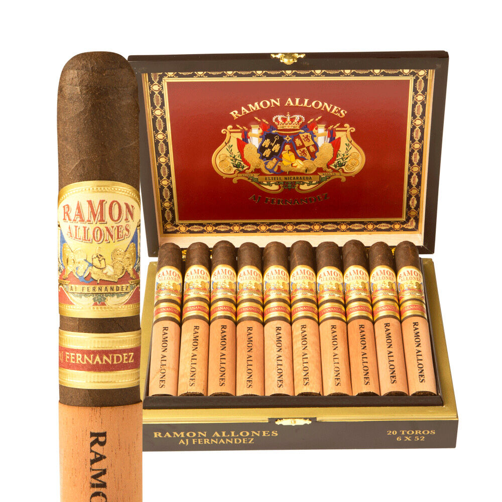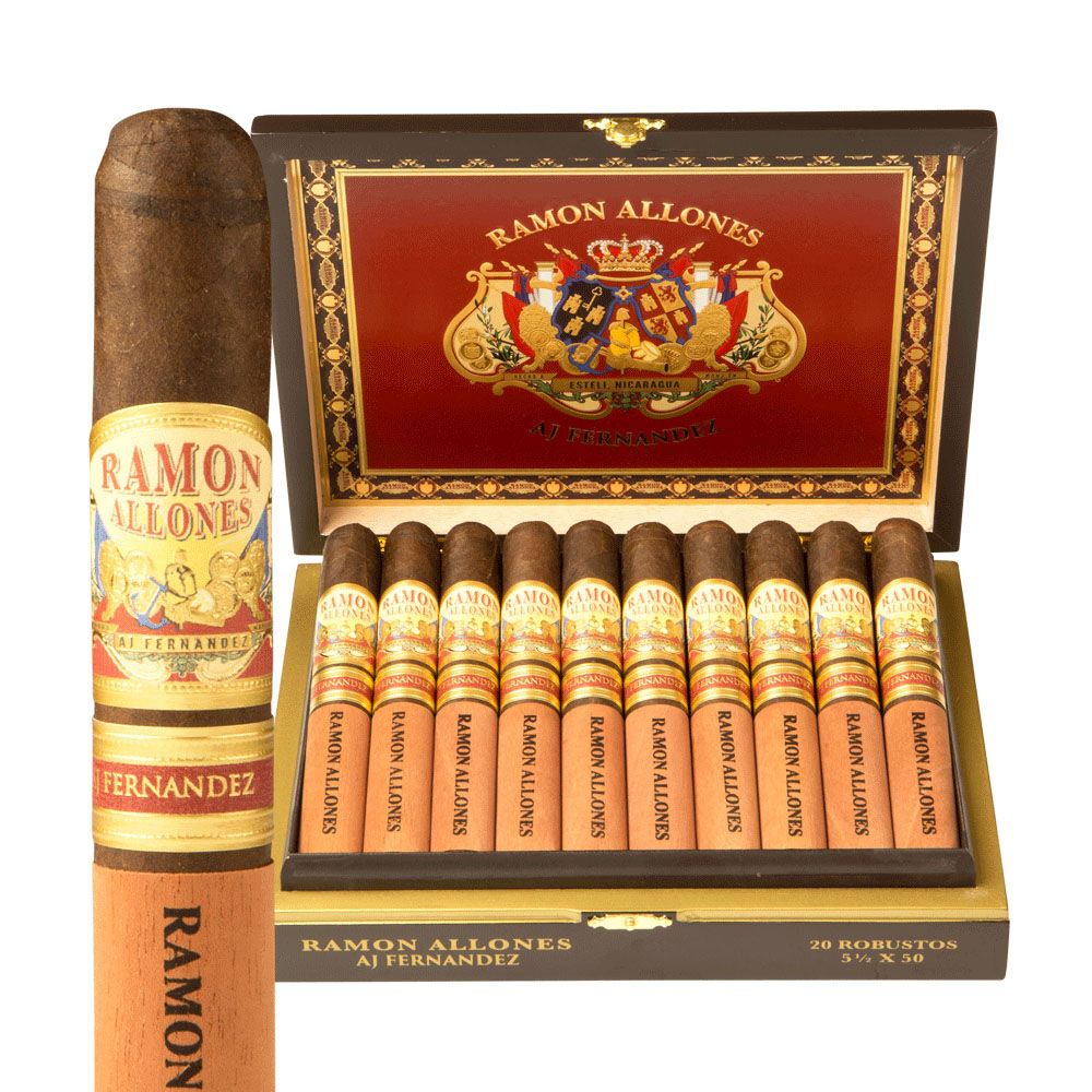 Ramon Allones is a famous Cuban heritage brand known for being a trend setter back in the day, and there is no better home for these treats than with Cuban-born cigar master Abdel ‘AJ’ Fernandez. Ramon Allones by AJ Fernandez cigars are a premium reworking of this storied brand, made to capture the strength and flavor of those good pre-embargo sticks. These treats are made by hand at Tabacalera AJ Fernandez in Nicaragua and presented as four popular vitolas. The blending consists of vintage Nicaraguan Corojo ’99 and Criollo ’98 long fillers bundled in an aged Nicaraguan Corojo ’99 binder and finished with top-shelf Nicaraguan Habano medio tiempo leaf for an extra kick of strength and flavor. These top-quality tobaccos combine to provide the palate with a bold and complex medium-full bodied smoke, delivering notes of spice, chocolate, nuts, espresso, earth, and cedar with each puff. Available in boxes of 20, stuff your humidor with your favorite vitola of Ramon Allones by AJ Fernandez cigars by placing your online order with Casa de Montecristo today.