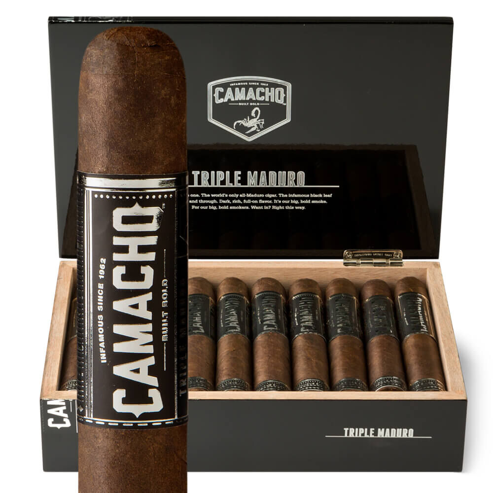 One of the most unique and richest cigar blends on the market today, Camacho Triple Maduro cigars are geared toward the seasoned palate with triple the usual use of maduro tobaccos. In fact, every single leaf in this magical blend has been masterfully fermented to a dusky maduro quality, and it took almost 85 different blends to find the one that worked best.
