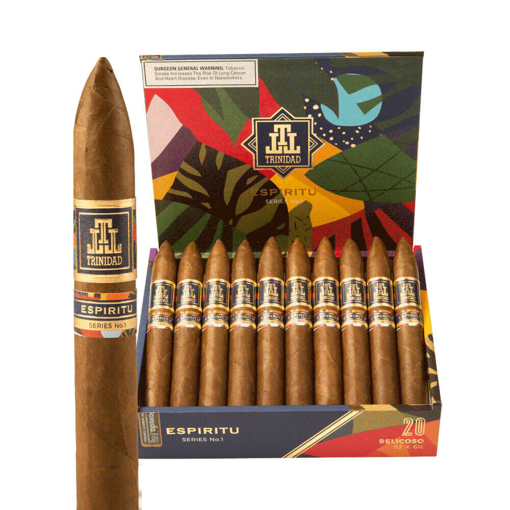 Reimagining the Cuban-heritage brand Trinidad, which is famous around the world for its top-shelf flavors, Trinidad Espiritu Cigars are colorful, vibrant blends that have gained a devoted following across the country. First released in 2019 to celebrate the Trinidad brand’s 50th anniversary, Trinidad Espiritu Cigars now encompasses three top-rated blends that highlight the tobaccos and cultures of countries around the world.For a long time, Trinidad did not enjoy the same popularity that other Cuban-heritage brands in the Altadis USA portfolio like Montecristo and Romeo y Julieta did. Rafael Nodal, TUSA head of product capability and the founder of Aging Room, sought to change all that with a colorful and vibrant series of blends that capture the spirit of Trinidad. Working with the famous cigar maker A.J. Fernandez, they came up with three excellent blends that captured the attention Trinidad deserves.The first entry into the Espiritu lineup is the original Trinidad Espiritu. Highlighting the golden years of Caribbean tobaccos in the late 1960s and early 1970s, Trinidad Espiritu is a Nicaraguan puro made with the finest aged Nicaraguan tobaccos. You can expect a complex and bold full-bodied smoke to grace your palate with every puff, delivering hearty flavors of white pepper, roasted nuts, toasty earth, cedar, vanilla, and hints of citrus zest.Trinidad Espiritu Series 2 cigars turns the attention to South America and the vibrant, colorful country of Brazil. To highlight the richness of Brazilian tobaccos and culture, the blend features a top-quality Brazilian Arapiraca wrapper over a Nicaraguan binder and a mix of Brazilian and Nicaraguan long fillers. Boasting Brazil’s colors on the boxes, Espiritu Series 2 provides a rich medium-full bodied medley of black pepper, dark chocolate, cinnamon, espresso, and touches of tobacco sweetness.The most recent addition to the Trinidad Espiritu roster, Trinidad Espiritu Series 3, brings the rich tobacco culture of Mexico into focus. Released ahead of the significant Mexican holiday Dia de los Muertos, Espiritu Series 3 dons a toothy San Andres Mexican Habano wrapper covering a hearty core of Nicaraguan long fillers and binder. A complex medium-full bodied smoke brimming with notes of dark chocolate, leather, cedar, peppery spices, and tobacco sweetness are bound to please the palate.All three blends are available in 5 popular sizes and offered in colorful and eye-catching boxes of 20, allowing you to pick the size and blend that best fits your preferences. You can pick up your Trinidad Espiritu Cigars at your local Casa de Montecristo or have them delivered right to your door by placing your online order today!